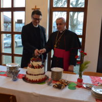 Setkání pokračovalo neformálním setkáním v zázemí spolku, kde biskup Vlastimil Kročil a strahovský opat Daniel Petr Janáček společně nakrojili třípatrový dort s čokoládovou dvacítkou na špici.