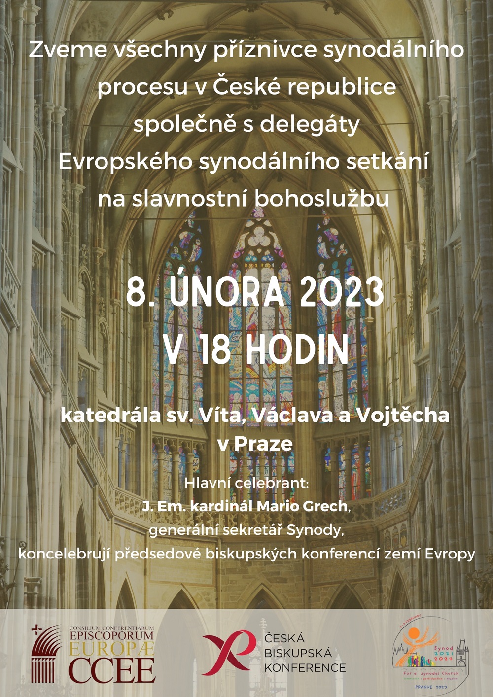 V rámci Evropského synodálního setkání se v pražské katedrále uskuteční 8. února 2023 slavnostní bohoslužba za účasti delegátů z celé Evropy. Mši, která začíná v 18 hodin, bude předsedat sekretář Synody kardinál Mario Grech, spolu s ním budou koncelebrovat předsedové evropských biskupských konferencí. Mše je otevřená pro veřejnost a jsou na ni zváni všichni příznivci synodálního procesu v České republice.