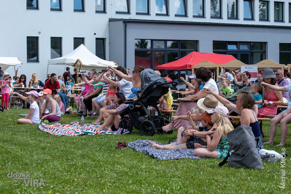 Poté jsme se již připojili k množství lidí, kteří si užívali radostný a bohatý program na Jánské louce. Díky informačním materiálům a lidem, kteří je přivezli a nabízeli, se mnoho lidí mohlo dozvědět něco o Teologické fakultě (nejvíce je zaujala Filosofie pro děti), o Young charitě a jejích projektech, o Papežském misijním dílu dětí, Díky Misijnímu klubku z Třeboně si lidé mohli koupit krásné věci a tím přispět na misie. A také mohli využít nabídky od sester z kláštera Božího milosrdenství – Rodiny Panny Marie. Děti si velmi užily Eliščiny pohádky od Víti Marčíka ml. Děkujeme opravdu všem, kteří tento Festival rodin připravili a také se jej zúčastnili.
