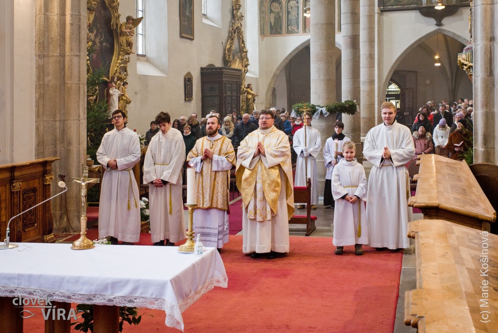 Mši svatou na Boží hod vánoční sloužil v třeboňském kostele Panny Marie Královny a sv. Jiljí P. Martin Bětuňák, asistoval jáhen Giovanni Giuliani. Následovalo lehké občerstvení, které připravili mladí farníci.
