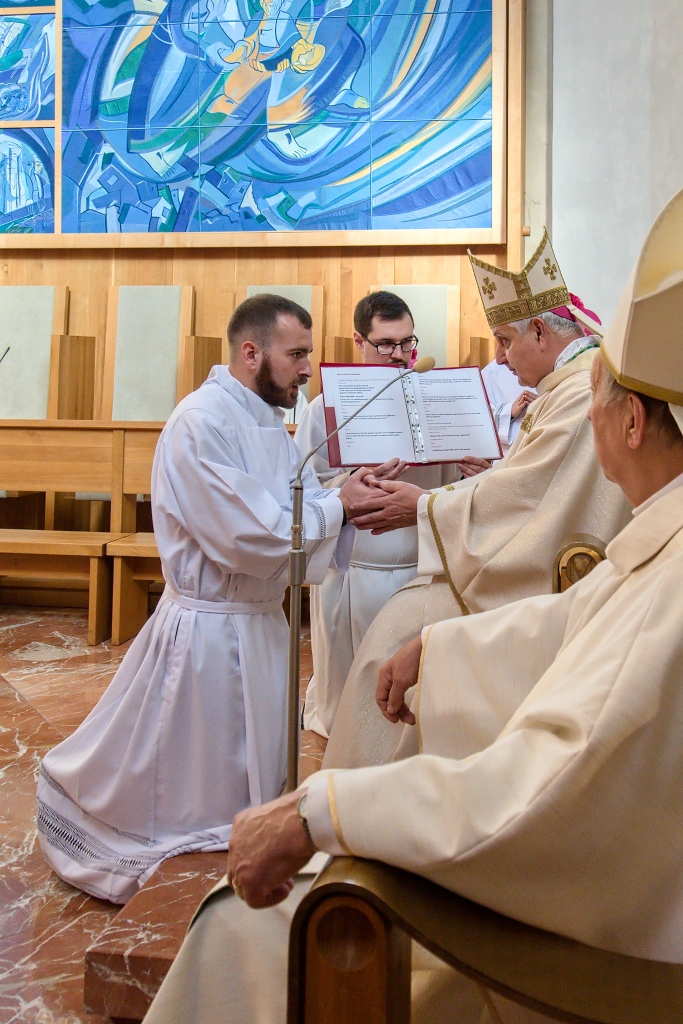První dva bohoslovci Diecézního – mezinárodního semináře Redemptoris Mater MARIANO ZANOLLI a GIOVANNI GIULIANI přijali při liturgii slavnosti Všech svatých z rukou diecézního biskupa Mons. Vlastimila Kročila jáhenské svěcení. Text k této důležité slavnosti pro místní církev najdete zde.