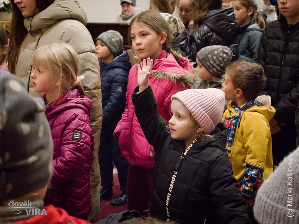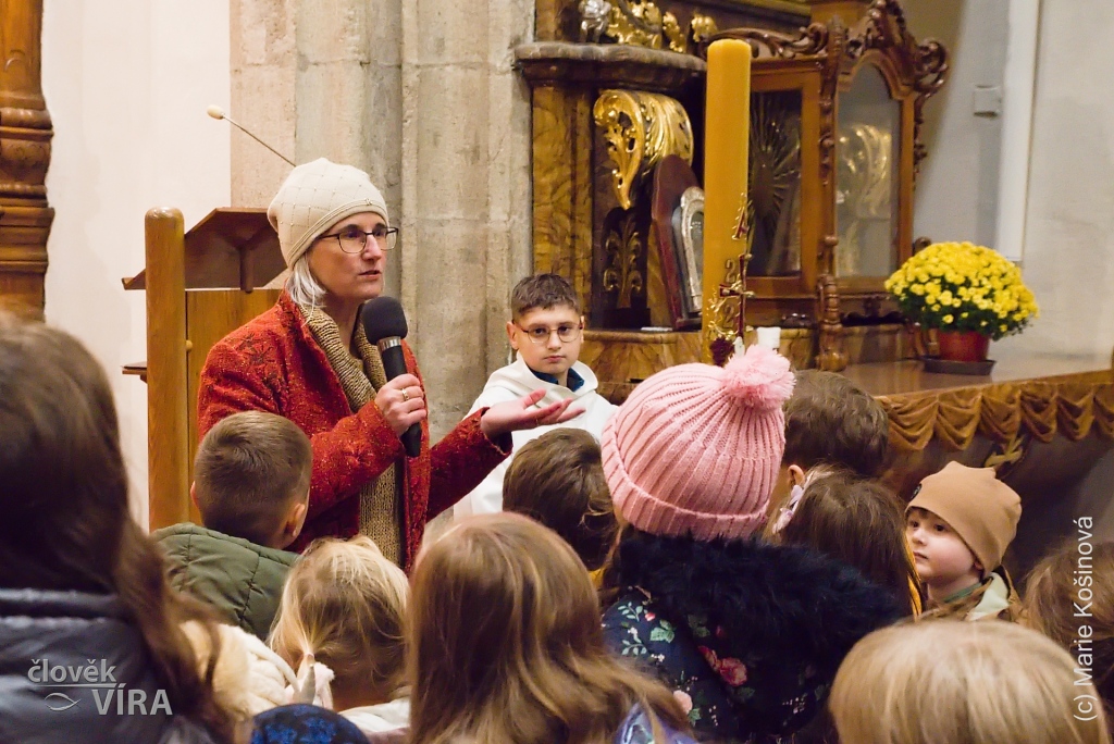 V kostele následovala mše svatá se zaměřením na děti. Mši sloužil místní farář P. Martin Bětuňák. Mši svatou hudebně doprovázela farní schola otců a přátel. Katechezi pro děti vedla katechetka Martina Fürstová. Povídání s dětmi o sv. Martinovi bylo zakončeno pomazáním dětí vzácným nardovým olejem, aby byly nositeli pokoje jako svatý Martin. „Blaze těm, kdo působí pokoj, neboť oni budou nazváni syny Božími.“ (Mt 5,9) Děti poté obdržely placky, kterými podarovaly své blízké.