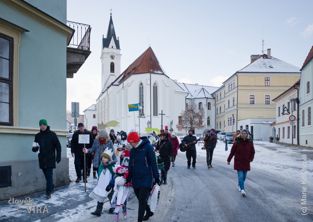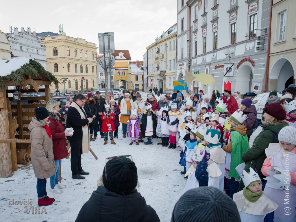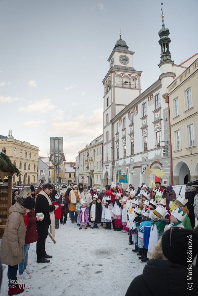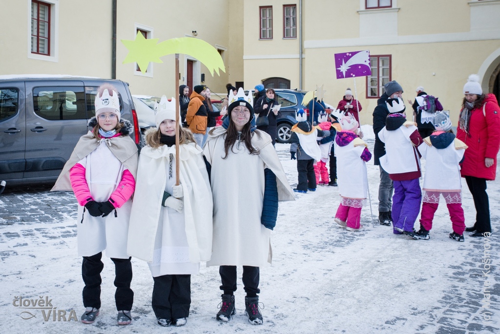 V pátek 2. ledna 2026 v 15 hodin se tříkráloví koledníci sešli na nádvoří u farního kostela Panny Marie Královny a svatého Jiljí a za zpěvu písně „My Tři králové jdeme k vám,…“ vyšli průvodem do ulic Třeboně a došli až na vánočně vyzdobené Masarykovo náměstí. Tam se setkali se zaměstnanci Charity a dostali požehnání od třeboňského faráře P. Martina Bětuňáka.