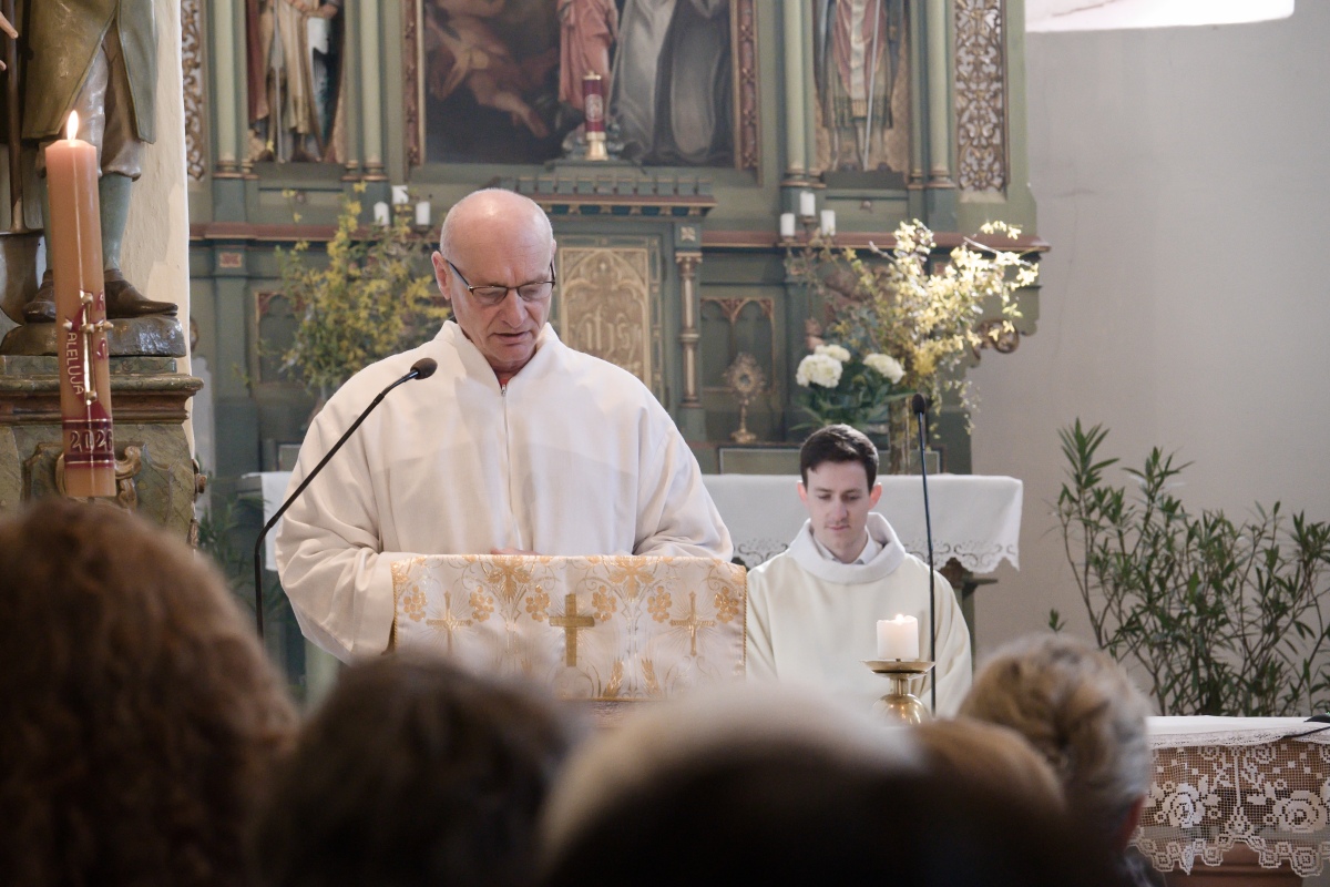 Boží hod velikonoční oslavili strunkovičtí se svých duchovním pastýřem P. Vojtěchem Razimou a jejich radost umocnily nové kostelní lavice.
