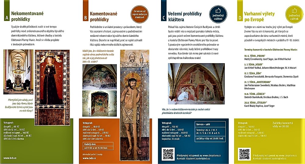 Nejaktuálnější informace včetně termínů všech událostí v areálu kláštera naleznete na facebooku https://www.facebook.com/klastercb