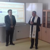 „Chceme dnes společně svolávat Boží požehnání na toto místo, kde se má hledat, nacházet a šířit pravda a také úcta k Bohu. Ať všichni, kdo zde budou vyučovat, dovedou uvádět v soulad lidskou moudrost a zjevenou pravdu. Svým životem ať dokáží dávat dobrý příklad. Studenti ať zde získávají pravé vědění a všechny potřebné znalosti, aby je i oni jednou mohli předávat dále“, vyprosil pro žáky i učitele otec biskup Vlastimil Kročil.