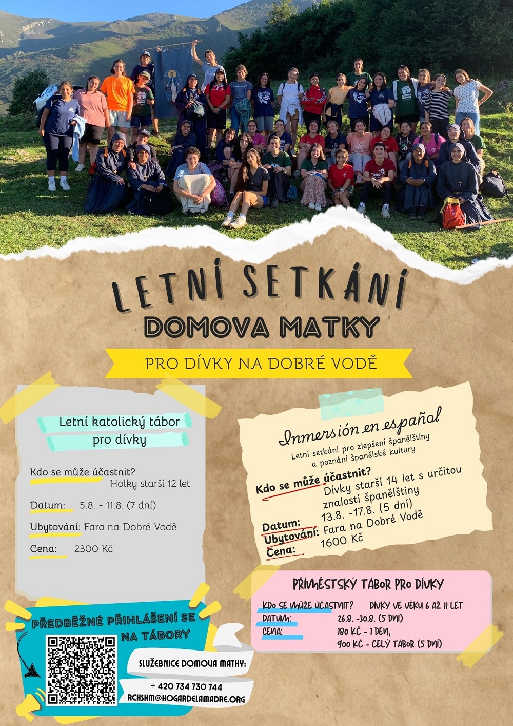Letos v létě nabízejí Služebnice Domova Matky tři různé možnosti setkání pro dívky různého věku – viz plakát níže.