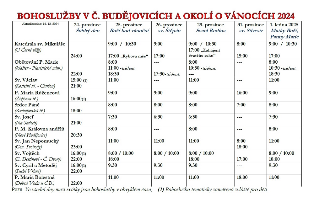 PŘEHLED VÁNOČNÍCH BOHOSLUŽEB v Č. Budějovicích a okolí