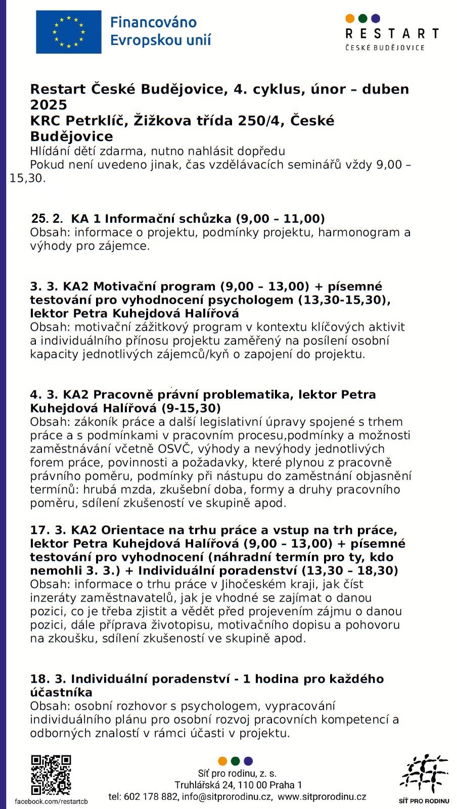 Všechny potřebné informace naleznete v letáčku níže a v harmonogramu celého kurzu.