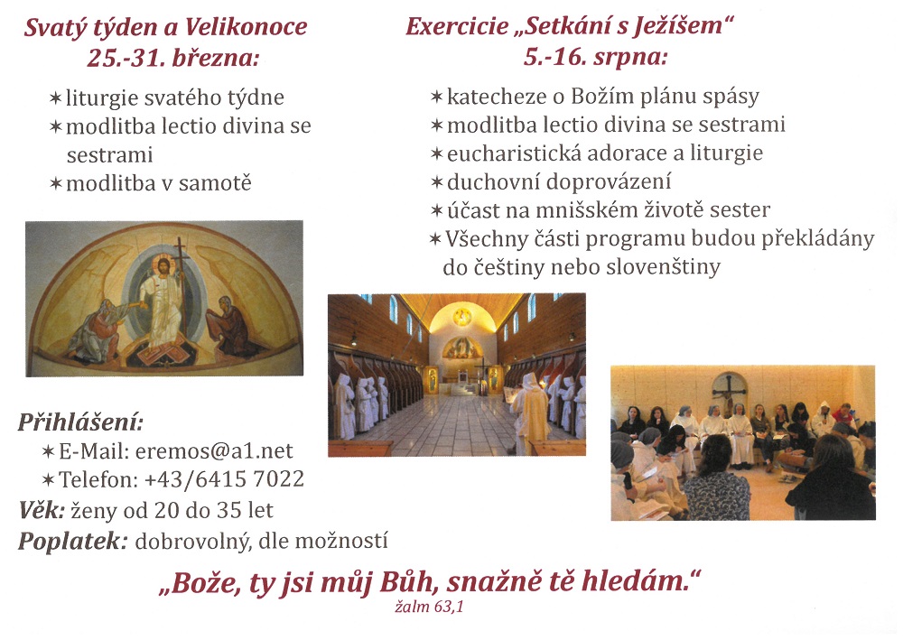 Přihlášky a informace: e-mail: eremos@a1.net nebo telefon +43 6415 7022