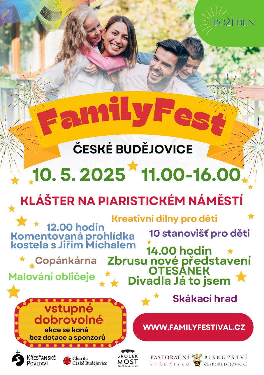 FamilyFest v Českých Budějovicích přinese bohatý program pro malé i velké v historickém prostředí dominikánského kláštera na Piaristickém náměstí v Českých Budějovicích. Vstup bude dobrovolný – akce se koná bez dotace a sponzorů.