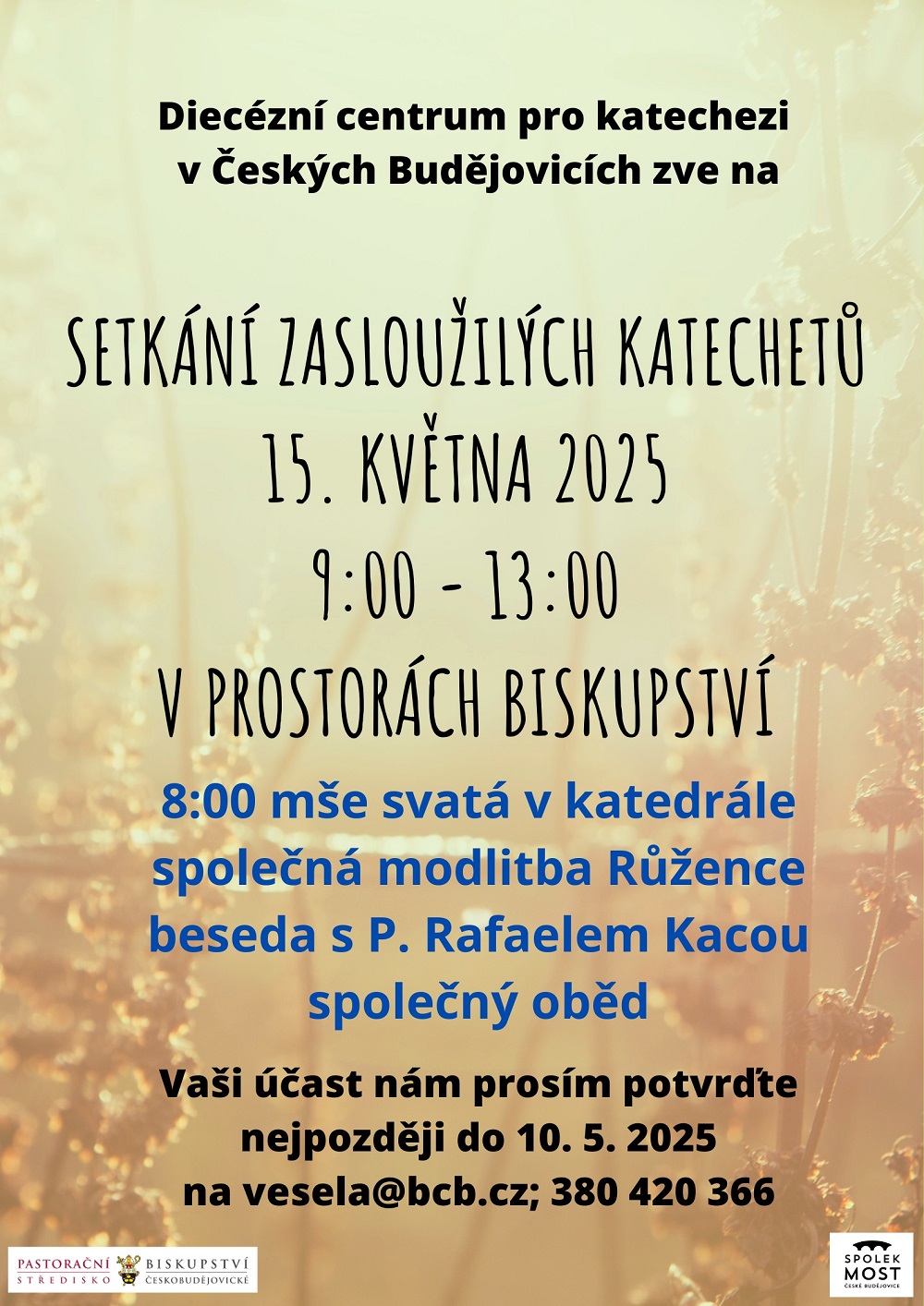 Vaši účast prosím potvrďte nejpozději do 10. 5. 2025 na e-mailu vesela@bcb.cz