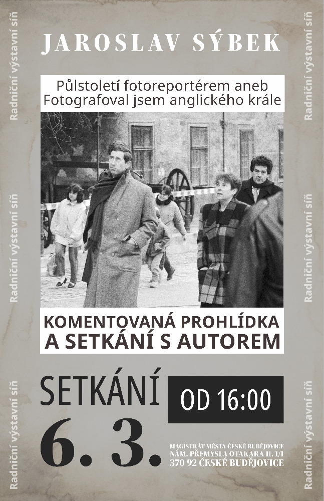 Srdečně vás zveme na komentovanou prohlídku výstavy fotografa Jaroslava Sýbka do Radniční výstavní síně v Českých Budějovicích. A při té příležitosti vám osobně poděkujeme za podporu knihy s názvem „Jaroslav Sýbek: Půlstoletí fotoreportérem aneb Fotografoval jsem anglického krále“. Knihu si můžete od autora nechat podepsat. Těšíme se na setkání s vámi.
