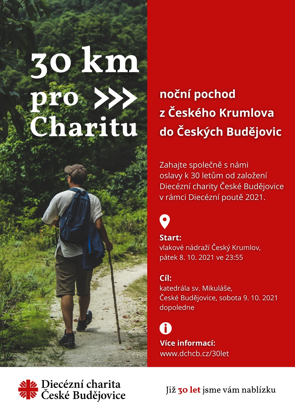 Připojte se k oslavám 30 let od založení Diecézní charity České Budějovice. Zahájení oslav se uskuteční v rámci Diecézní poutě 2021 formou nočního pochodu na trase Český Krumlov – České Budějovice.