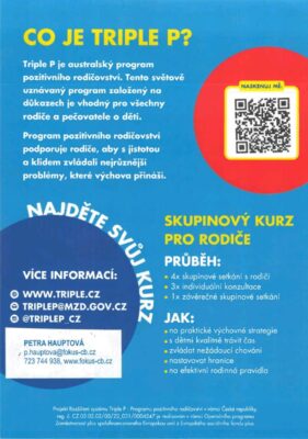 💡 „Program pozitivního rodičovství“ (angl. zkratka PPP, proto „Triple P“ je celosvětově rozšířený a uznávaný kurz pro rodiče a pečovatele o děti