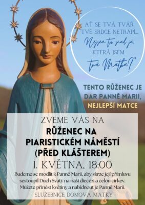 Služebnice Domova Matky srdečně zvou na modlitbu k Panně Marii, aby skrze její přímluvu sestoupil Duch svatý na naši diecézi a na celou církev. Můžete přinést květiny a nabídnout je Panně Marii.
