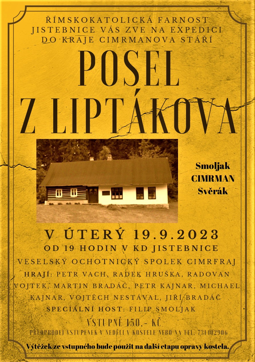 Předprodej vstupenek v neděli v kostele nebo na telefonu 731 402 906.
