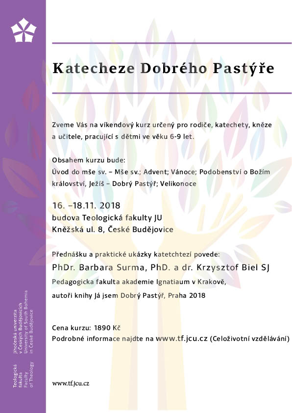 Přednášku a praktické ukázky katechezí povede: PhDr. Barbara Surma, PhD. a dr. Krzysztof Biel SJ (Pedagogická fakulta akademie Ignatiaum v Krakově) ,autoři knihy Já jsem Dobrý Pastýř, Praha 2018.