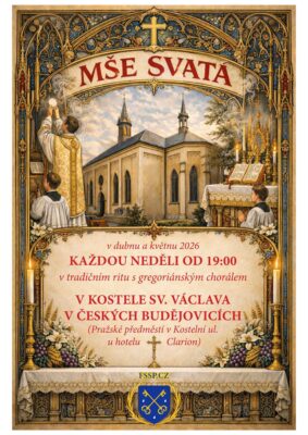 Mše svaté v tradičním ritu s gregoriánským chorálem nově v ČB v neděli večer