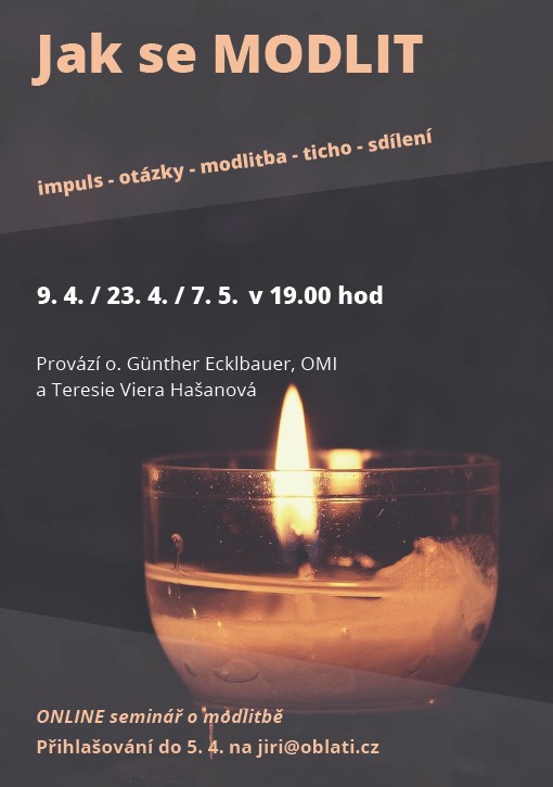 Seminářem provázejí o. Günther Ecklbauer, OMI a Teresie Viera Hašanová. Přihlásit se můžete do 5. 4. na jiri@oblati.cz.
