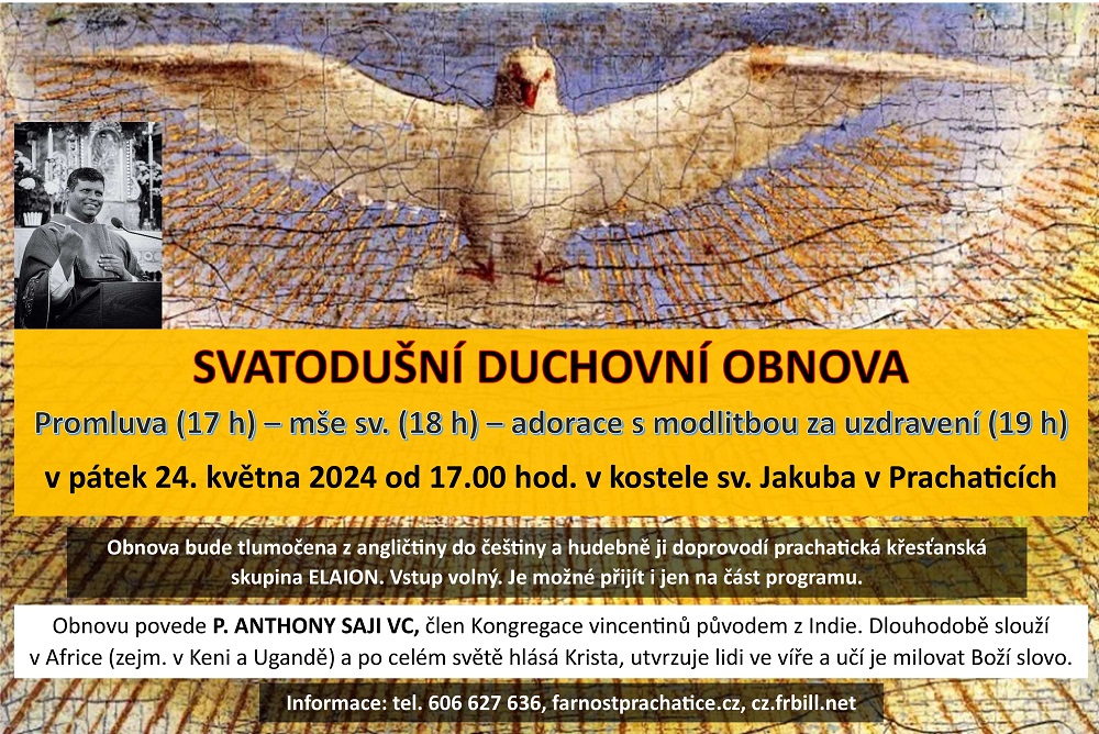 Obnova bude tlumočena z angličtiny do češtiny a hudebně ji doprovodí prachatická křesťanská skupina ELAION. Vstup volný. Je možné přijít i jen na část programu.