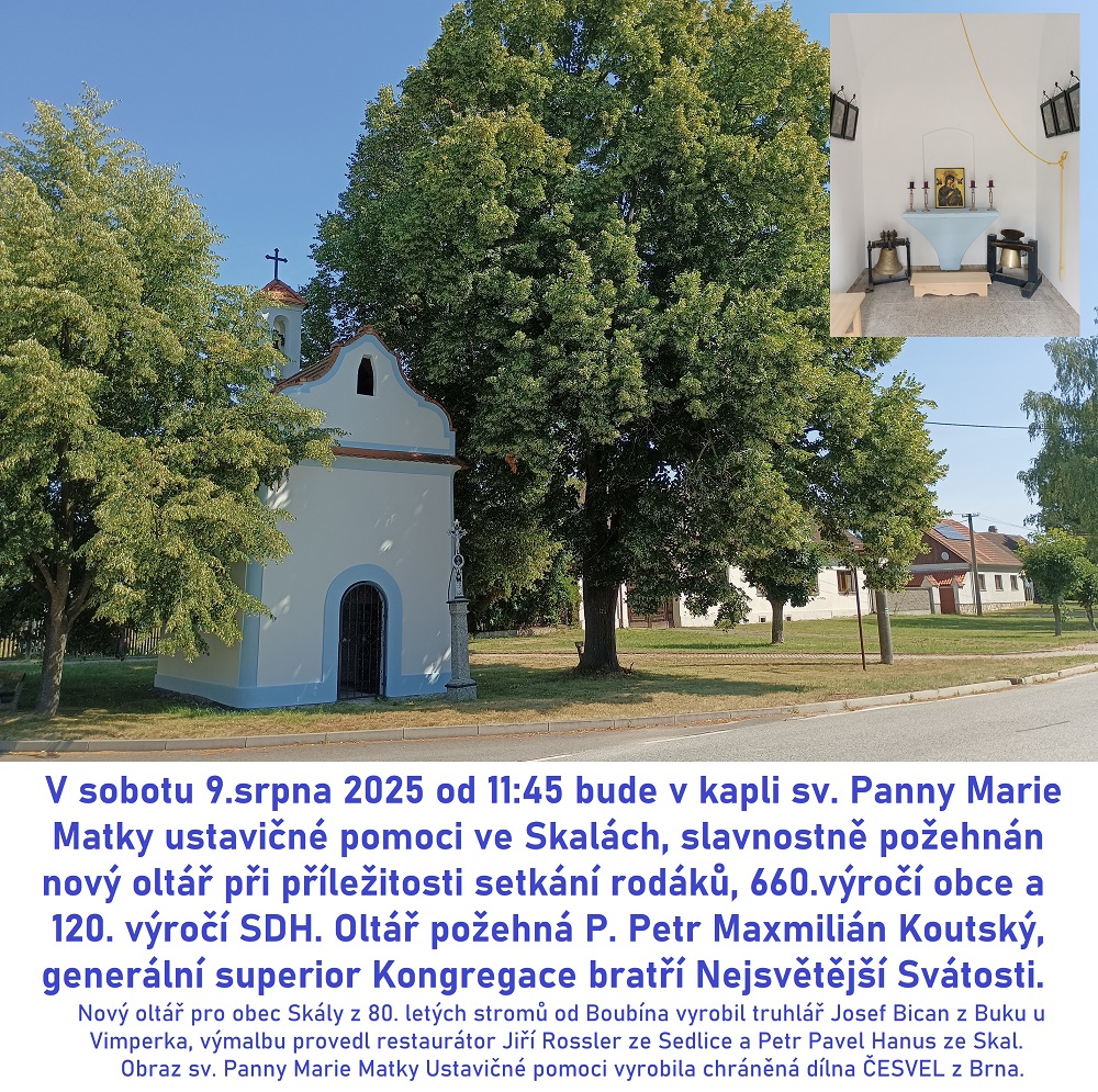 Samotný oltář vyrobil ze dřeva stromů, které byly 80 let staré, truhlář Josef Bican z Buku u Vimperku. Výmalbu provedli restaurátor Jiří Rossler ze Sedlice a Petr Pavel Hanus ze Skal. Obraz Panny Marie Matky Ustavičné Pomoci vyrobila chráněná dílna ČESVEL z Brna.