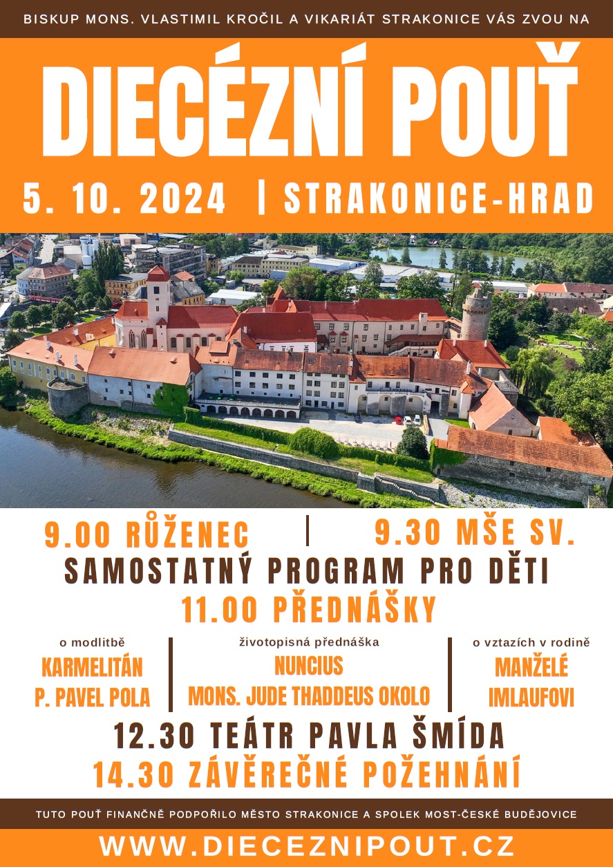 Diecézní biskup Mons. Vlastimil Kročil a vikariát Strakonice vás srdečně zvou na Diecézní pouť 2024 v areálu strakonického hradu.
