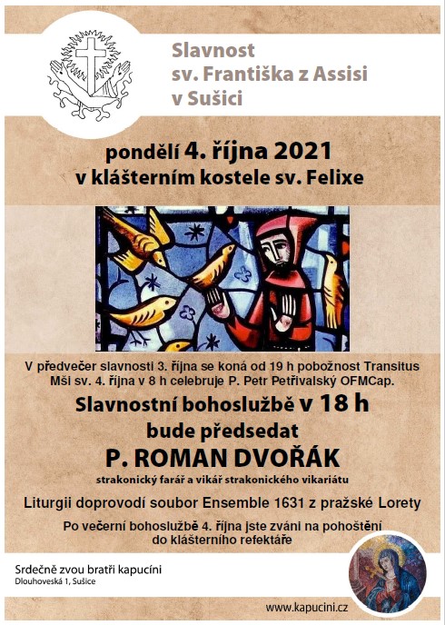 Zveme vás na Slavnost sv. Františka v Sušici. Další informace najdete v článku ZDE.