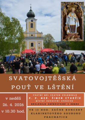 V rámci každoroční pouti na Lštění přijměte pozvání na poutní mši svatou, koncert Klarinetového souboru Prachatice, občerstvení, hudbu a pouťové atrakce.