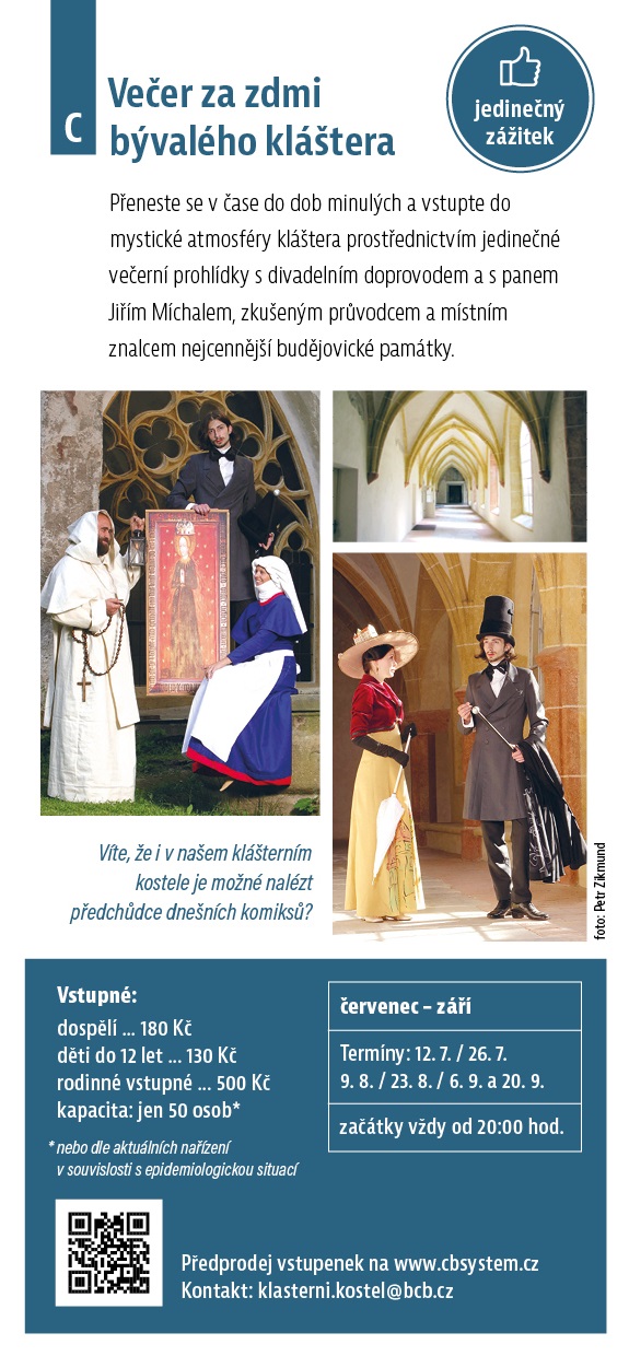 Přeneste se do dob dávno minulých a prožijte mytickou atmosféru v bývalém dominikánském klášteře – nejstarší dosud stojící stavbě v Českých Budějovicích. Účinkují herci agentury Kultur-Kontakt v dobových kostýmech.