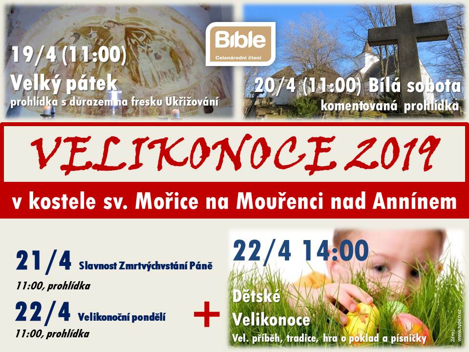 - velikonoční pondělí – 11 h – komentovaná prohlídka a 14 h – Mouřenecké dětské Velikonoce (písničky v podání Mirky Dolanské ze sušického Mementa a dalších, velikonoční tradice, hra o poklad sklářské královny Ludmily II.)