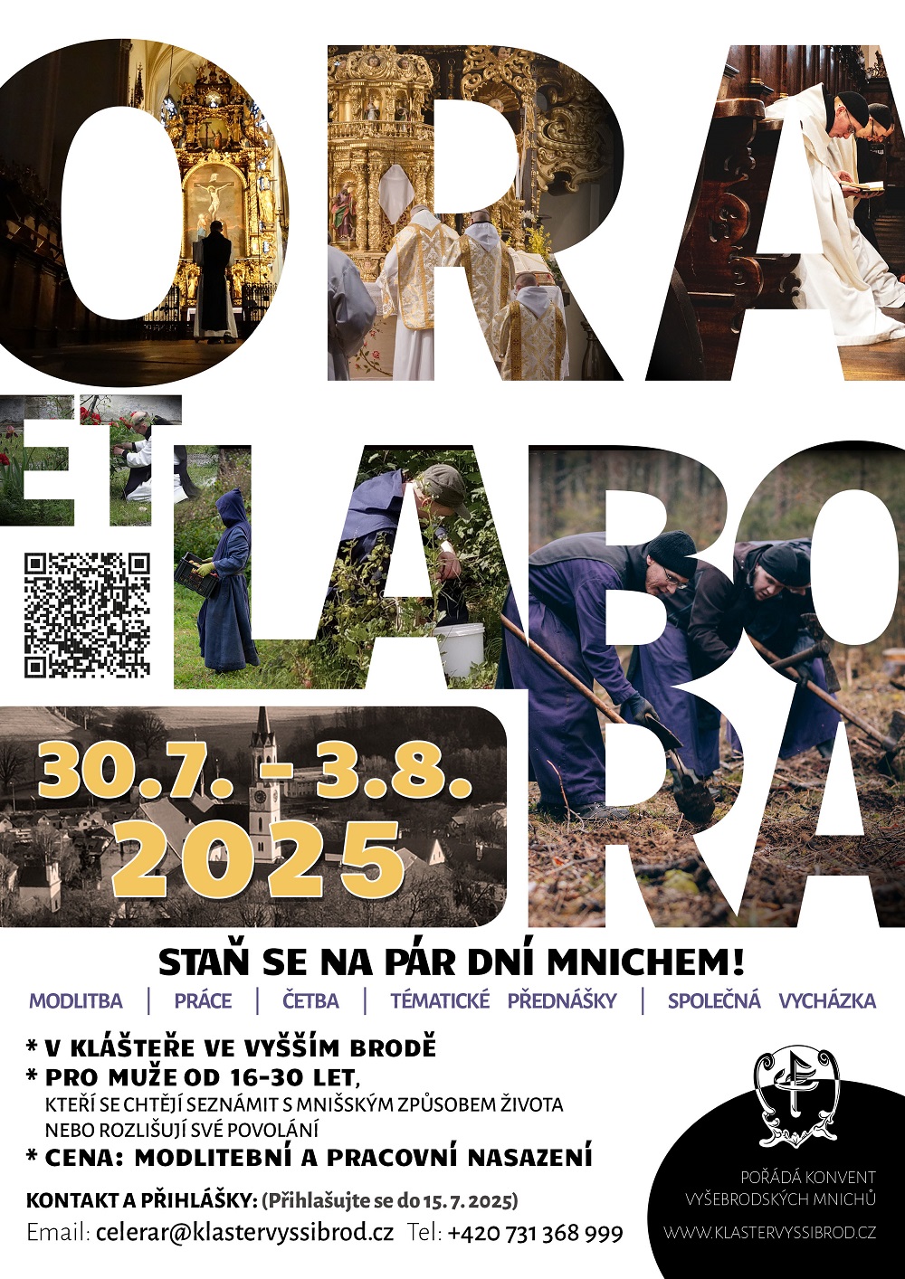 Akcí, kterou jsme nazvali „Ora et labora“ (tj. Modli se a pracuj), chceme dát v několika dnech mladým mužům možnost seznámit se s mnišským způsobem života. Proto se nejedná o klasické exercicie, kam se jdete výlučně ztišit a obnovit vztah s Bohem. Ačkoliv samotný aktivní pobyt s mnichy k tomu sám osobě navádí, tak „Ora et Labora“ nabízíme konkrétně těm, kteří mají zájem seznámit se s životem cisterciáků, hledají nebo už konkrétně rozlišují své duchovní povolání.