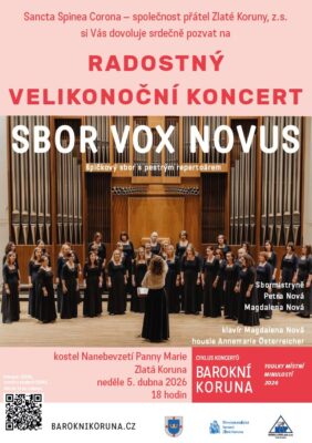Na Boží hod velikonoční 5. dubna 2026 jsme pro Vás opět připravili Velikonoční koncert. Tentokrát se netradičně představí Vox Novus – špičkový ženský pěvecký sbor z Českých Budějovic. Soubor s více jak desetiletou tradicí čítá na čtyřicet žen různého věku i profesí, které spojuje láska ke sborovému zpěvu. Sbor je pro své členky místem radosti, růstu i společného sdílení. Každá přináší svůj jedinečný hlas, ale dohromady vytvářejí harmonický celek postavený na kvalitní hlasové kultuře a muzikálnosti. Repertoár sboru je velmi pestrý – sahá od renesance a baroka přes romantismus až po soudobé skladby a úpravy lidových písní. Sbor vystoupil na řadě domácích i zahraničních festivalů – například v Praze, Krakově, Římě, Utrechtu, Řecku, Francii či ve Vídni. Pravidelně pořádá vánoční a benefiční koncerty a spolupracuje s Jihočeskou filharmonií. Program Velikonočního koncertu sbor připravil speciálně na míru Zlaté Koruně.
